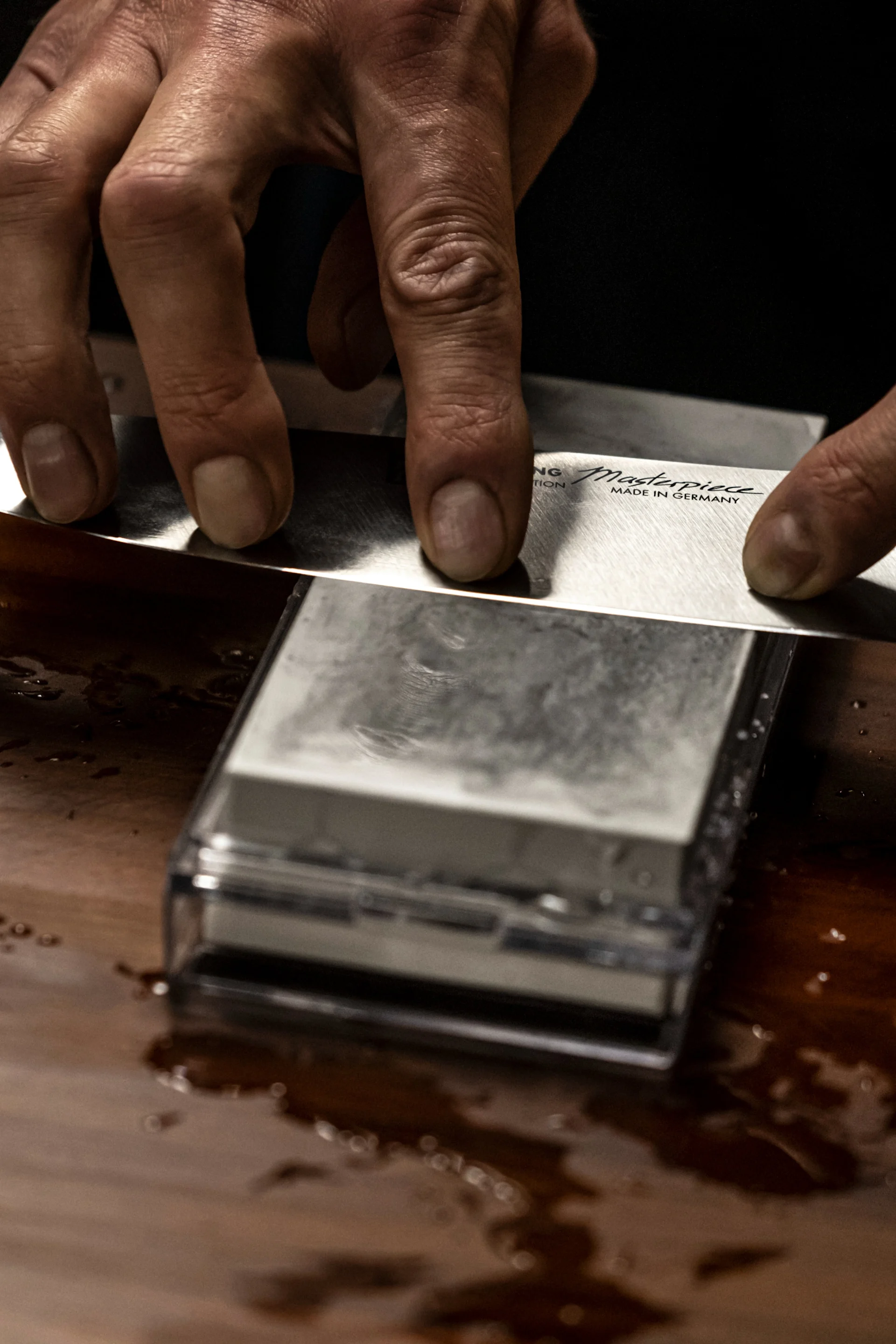 Anledningen til at dine knive skal håndvaskes er mest fordi at opvaskemidel indeholder slibemidel som kan skade skarpheden på kniven og kan endda lave pletter på knivens blad da det indeholder salt. Knivens blad kan skades i opvaskemaskinen da den kan støde til andet bestik i opvaskemaskinen. Det er også meget let at skade sig på en kniv som står i opvaskemaskinen når du tager den ud og ind i maskinen. Vask din kniv op under lunken vand når du skifter imellem forskellige råvarer og lad ikke kniven ligge i opvaskevand. Når du har brugt kniven, skal du vaske den kniven med det samme og tørre den af med et viskestykke.