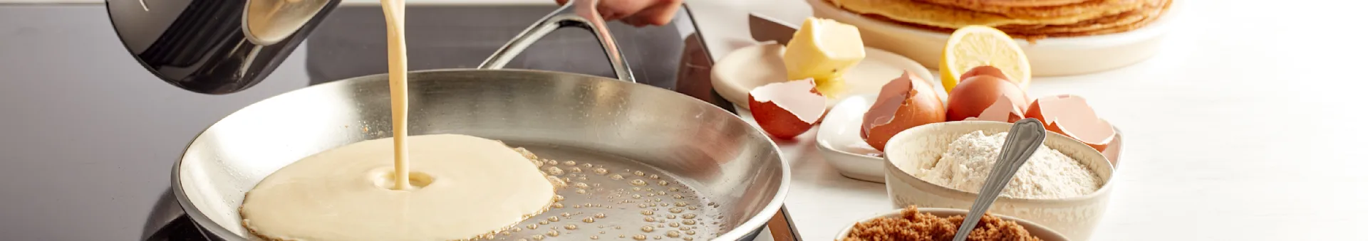 De fleste bruger en eller anden form for pande næsten dagligt. Denne kategori omfatter klassiske stegepander i alle mulige former og materialer, sauterpander, grillpander, stegegryder, wokpander, sauteuser og pandekagepander. Stegt mad er fantastisk lækkert, men for at få det bedste resultat er det vigtigt at vælge sin pande med omhu! Er du i tvivl så se vores stegepandeguide her.