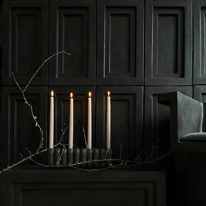 Tube lysestage Coffee fra danske 101 Copenhagen er designet af Kristian Sofus Hansen & Tommy Hyldahl og er fremstillet af keramik, der er håndlakeret. Brug den 70'er-inspirerede hvide lysestage sammen med kronlys og placer den på hylden i stuen for en varm og hjemlig følelse.