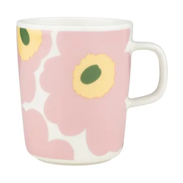 Det herlige krus Unikko fra Marimekko er designet af Sami Ruotsalainen med dekoration af Maija Isola. Unikko-mønstret kom til i 1964 efter at Marimekkos grundlægger Armi Ratia havde bebudet et forbud mod blomstermønstre. Men Maija Isola lykkedes at overtale hende med sit dejlige valmue-mønster og Unikko blev sat i produktion. Efterfølgende er det blevet lidt af Marimekkos signaturmønster.